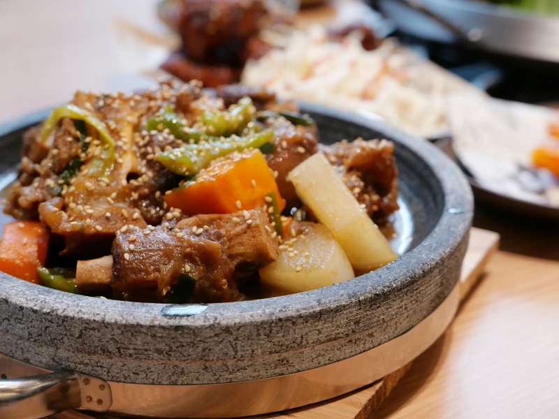 為了慶祝公益店開幕,也順勢推出五道臺中限定新菜。 以牛大骨與牛雜骨熬煮九小時,去油后再熬成三種不同濃度的高湯,最后的乳白色湯頭口感濃厚卻不膩;則加上韓國辣醬提味,微辣溫潤。若想嘗試更稀有的韓式料理,則是連臺北都相當(dāng)少見的經(jīng)典菜色,不容錯過的選項,光是處理過程長達(dá)八小時,再加上特製醬油,完成肉質(zhì)軟糯、醬香微甜的風(fēng)味。