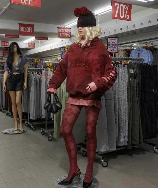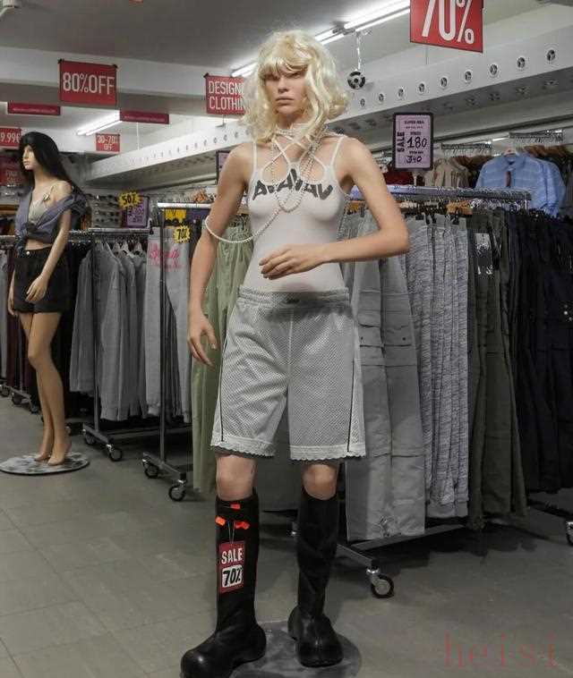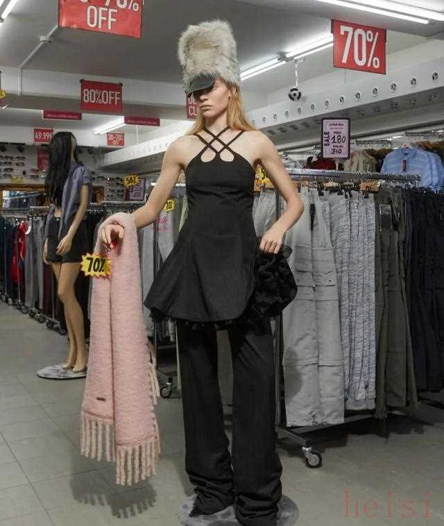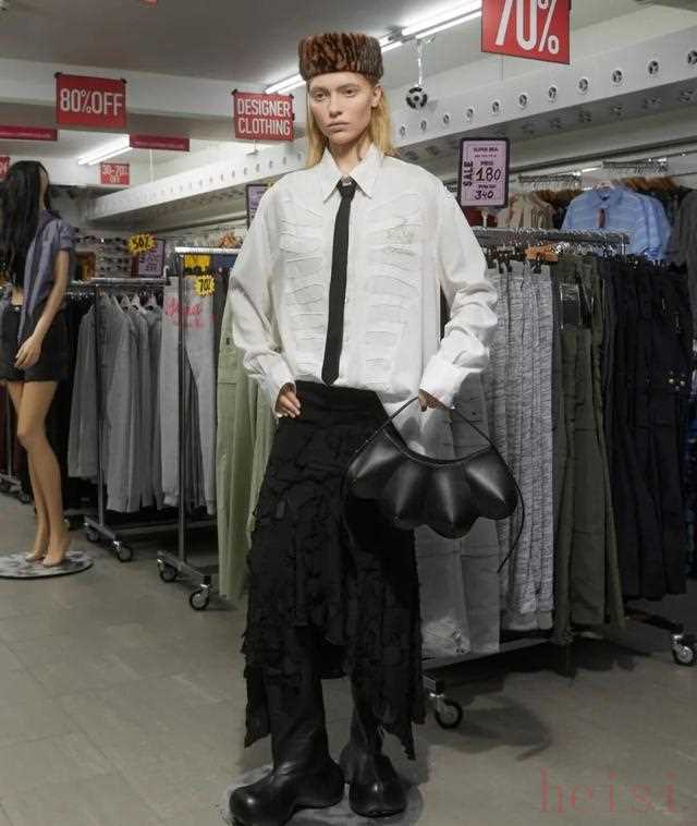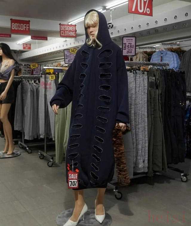 最離譜的是AVAVAV,把宜家回收的沙發(fā)布做成鏤空襯衫,磁吸扣“啪”一聲合上,穿脫速度比前任翻臉還快。