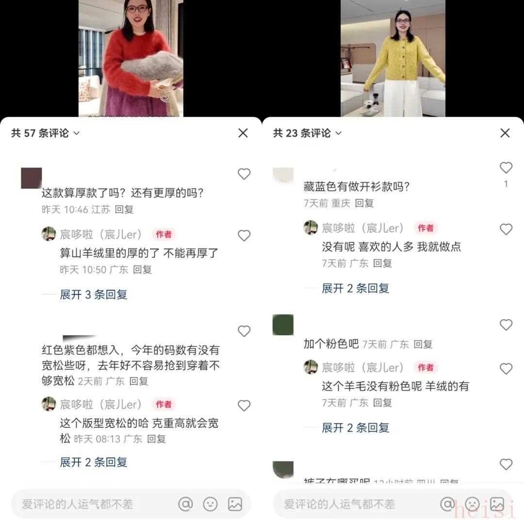 “筆記是我和客戶溝通的重要媒介,帶貨只是生活的一部分?!边@種真實(shí)感,為小汐的“田中小雞Tanaka hiyoko”沉淀下第一批忠實(shí)的用戶,她們不再是冰冷的ID,而是在評(píng)論區(qū)與她討論版型、催促上新、甚至分享自己生活的“朋友”。