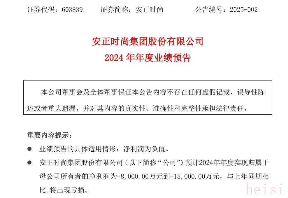 "核心事件:" 安正時尚發(fā)布預警,預計2023年預虧8000萬元至1.5億元人民幣。