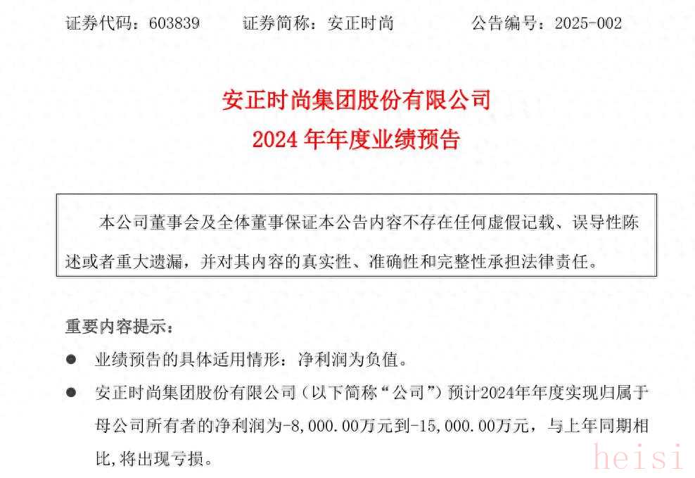 1月17日,安正時(shí)尚(603839)公告稱,公司預(yù)計(jì)2024年年度實(shí)現(xiàn)歸母凈利潤-1.5億元至-8000萬元,同比盈轉(zhuǎn)虧;扣非凈利潤-1.8億元至-9500萬元。