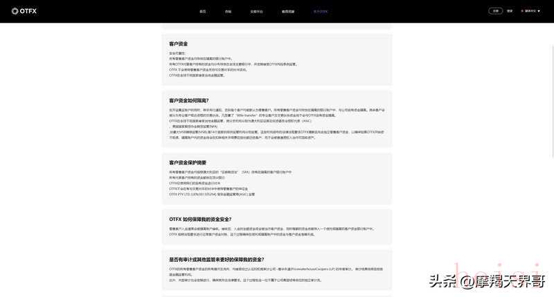 OTFX歐匯在其官方網(wǎng)站上顯著提到,客戶資金存入受監(jiān)管的獨(dú)立賬戶,他們不與客戶進(jìn)行任何形式的反交易。他們聲稱受到澳大利亞ASIC的監(jiān)管,并表示根據(jù)澳大利亞《證券期貨法》(SFA),所有零售客戶資金都存放在獨(dú)立的客戶銀行賬戶中。他們還聲稱,客戶資金存放在頂級銀行。