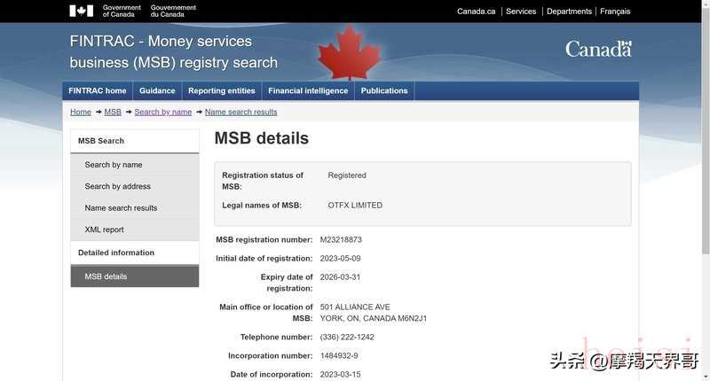 這一次,我們確實(shí)可以看到OTFX歐匯是在加拿大Fintrac MSB的官方網(wǎng)站上注冊的,然而,這里的根本問題是,F(xiàn)intrac MSB是加拿大境內(nèi)的一個(gè)反洗錢組織,它監(jiān)督參與轉(zhuǎn)賬、貨幣兌換和匯款的公司,OTFX歐匯只是利用了里面的漏洞,即許多投資者可能不了解它們之間的區(qū)別,這是相當(dāng)狡猾的。