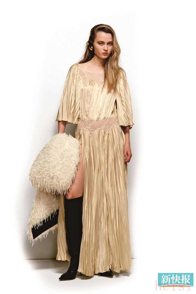 與緞面、絲綢等光澤感材質(zhì)在不同部位拼接,既柔美又具奢華感。