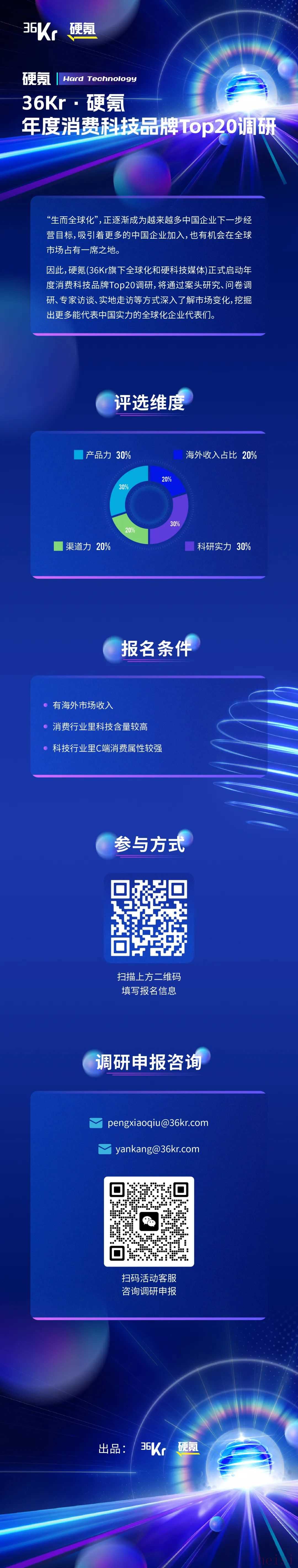 "【正式啟動(dòng)】36Kr·硬氪年度消費(fèi)科技品牌Top20調(diào)研盛大開啟!"
