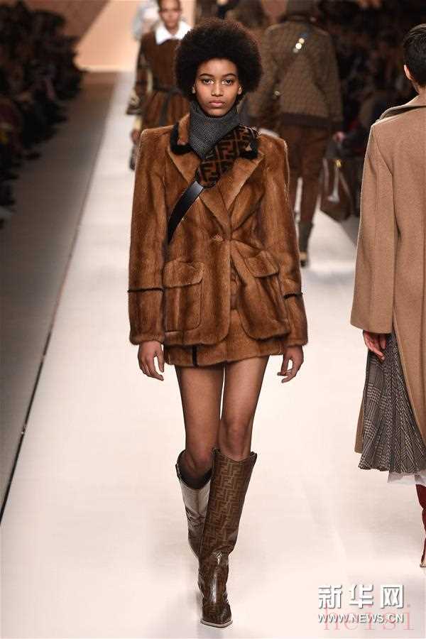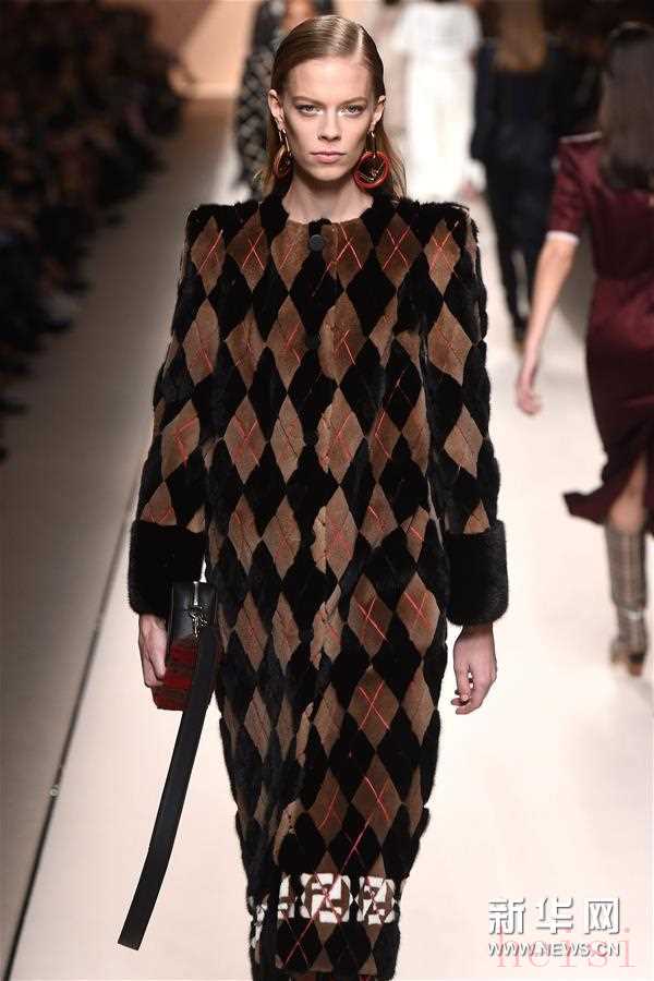 2月22日,在意大利米蘭時(shí)裝周上,模特展示芬迪(Fendi)品牌2018/19秋冬女裝新品。 新華社/西霸