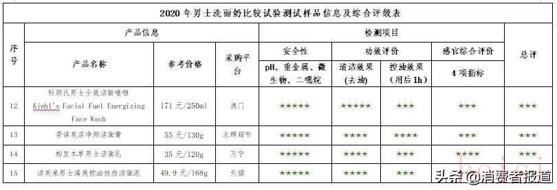 "15款男士洗面奶比較試驗主觀評價結(jié)果概要"