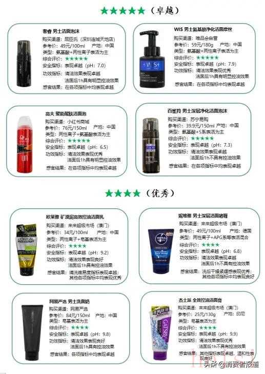 2. "百雀羚 (Bai雀羚):" 該品牌的產(chǎn)品在本次試驗中表現(xiàn)出色,可能得益于其溫和的配方、適合亞洲男性膚質(zhì)的特性,以及良好的清潔力和舒適的膚感,獲得了較高的用戶滿意度。