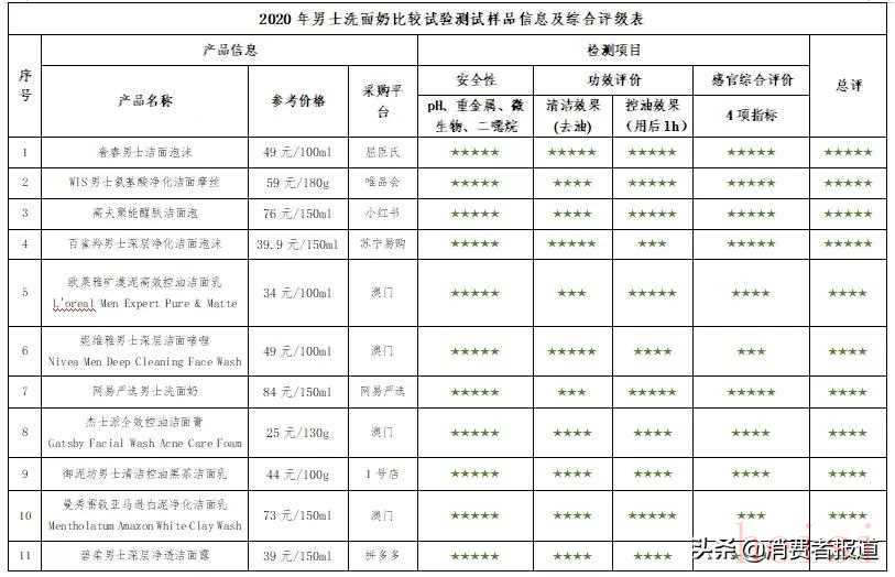 為了解市面上男士洗面奶的安全性、功效評價和感官體驗,給消費者提供科學(xué)合理的消費指引,深圳市消費者委員會聯(lián)合澳門特別行政區(qū)政府消費者委員會、福田區(qū)消費者委員會和寶安區(qū)消費者委員會開展男士洗面奶比較試驗,由深圳市品質(zhì)消費研究院執(zhí)行,深圳市計量質(zhì)量檢測研究院和上海微譜化工技術(shù)服務(wù)有限公司承檢,對國內(nèi)外15個知名品牌男士洗面奶進行了測評。