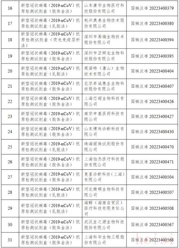 12月22日,經(jīng)國家藥監(jiān)局審查,批準(zhǔn)艾維可生物科技有限公司和邁克生物股份有限公司的2個(gè)新冠病毒抗原檢測試劑產(chǎn)品。截至目前,國家藥監(jiān)局已批準(zhǔn)44個(gè)新冠病毒抗原檢測試劑產(chǎn)品。