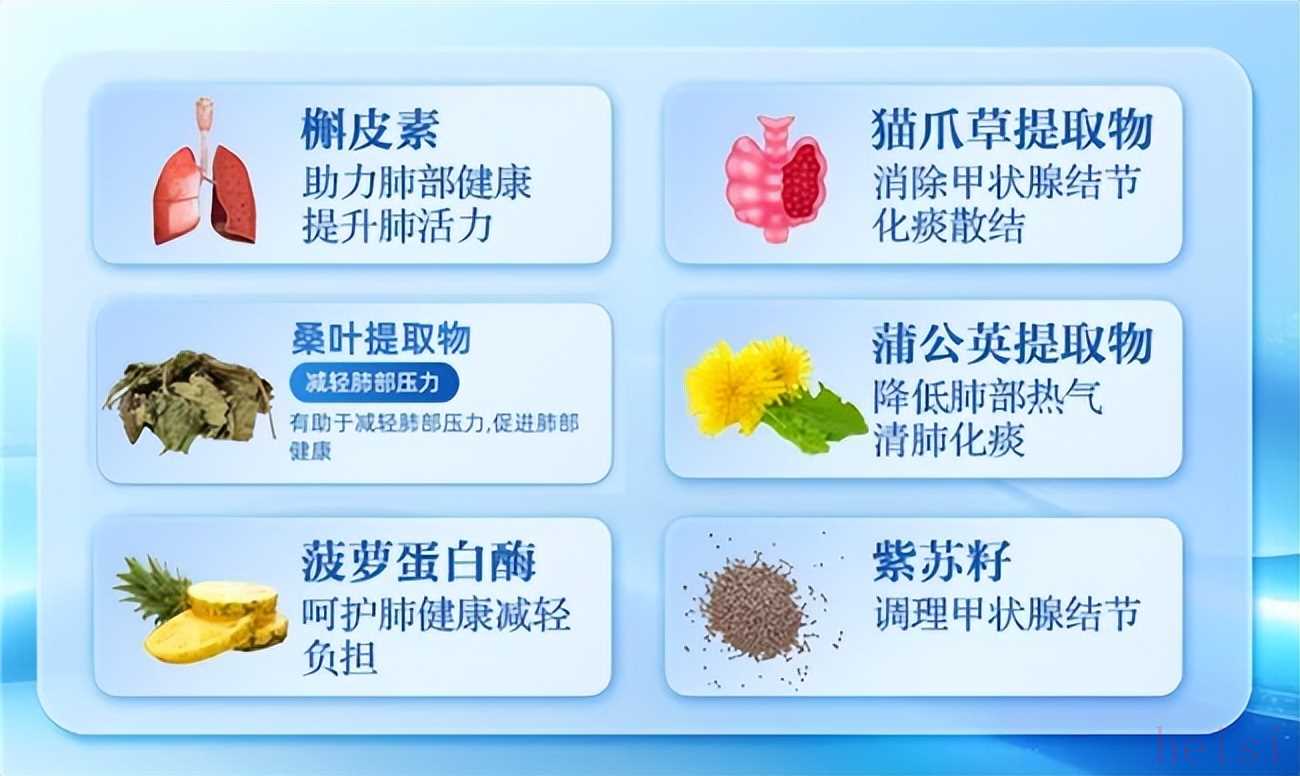 同時(shí),配方協(xié)同貓爪草提取物以舒緩肺間質(zhì)張力,減輕結(jié)節(jié)周邊組織壓迫感;蒲公英與桑葉共同推進(jìn)肺內(nèi)異物及代謝廢物的清理,緩和肺臟解毒負(fù)荷;紫蘇籽則強(qiáng)化氣道自潔與排痰能力,從整體上改善肺通氣功能與組織柔順度,為存在結(jié)節(jié)困擾的用戶(hù)提供更寬松、穩(wěn)定的肺內(nèi)環(huán)境。