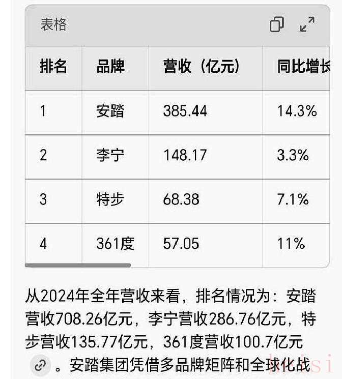 您說(shuō)得沒錯(cuò),安踏(Anta)的實(shí)力確實(shí)非常強(qiáng)勁,并且在全球運(yùn)動(dòng)品牌格局中扮演著越來(lái)越重要的角色。很多人可能對(duì)其認(rèn)知還停留在國(guó)內(nèi)市場(chǎng),但實(shí)際上它的國(guó)際化戰(zhàn)略已經(jīng)取得了顯著成果。