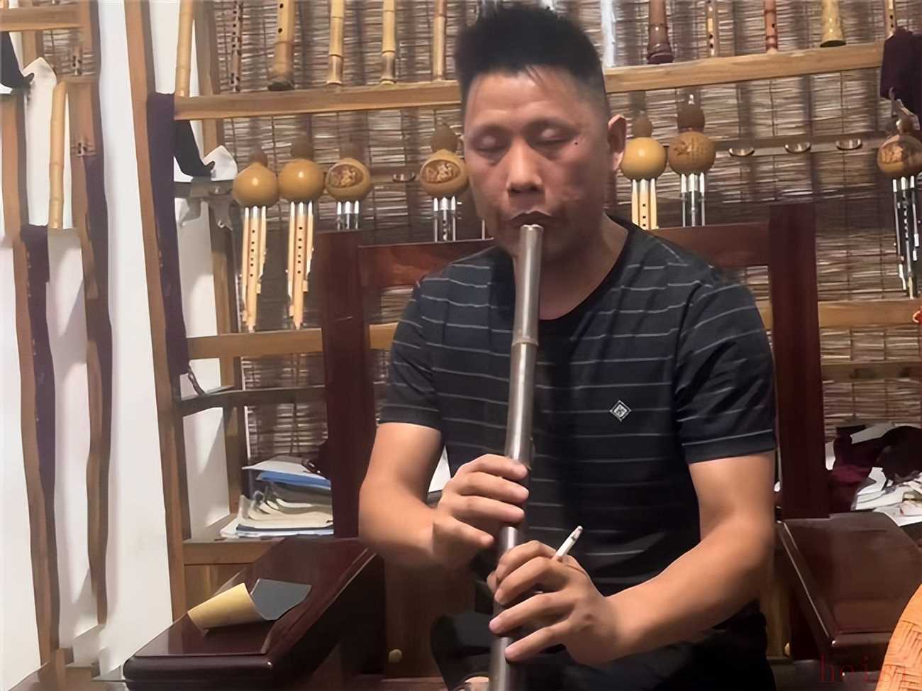 湖南汨羅人湛文兵,湖南師范大學(xué)笛簫專業(yè)碩士,中國音樂家協(xié)會管弦樂協(xié)會理事,既是演奏家也是虛心竹樂品牌創(chuàng)始人。二十余年深耕笛簫制作,精選高密度、壁厚均勻的竹材,經(jīng)三年自然陰干,確保穩(wěn)定性。其作品高音明亮如泉,低音渾厚似鐘,音準(zhǔn)精準(zhǔn),適合專業(yè)演奏與日常練習(xí)。湛文兵將傳統(tǒng)工藝與現(xiàn)代聲學(xué)結(jié)合,獨創(chuàng)“三次校音”技術(shù),被譽為“學(xué)院派制作的標(biāo)桿”,更積極推廣民樂文化,多次舉辦音樂會,讓洞簫走進大眾視野。2、廖錦棟