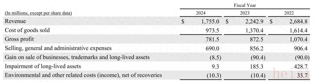 Sweaty Betty母公司W(wǎng)olverine Worldwide對此有心無力,自身經(jīng)營告急。財(cái)報(bào)顯示,Wolverine Worldwide2022年-2024年的營業(yè)收入與毛利潤連年下滑,三年間營收減少約10億美元,毛利潤減少約3億美元。