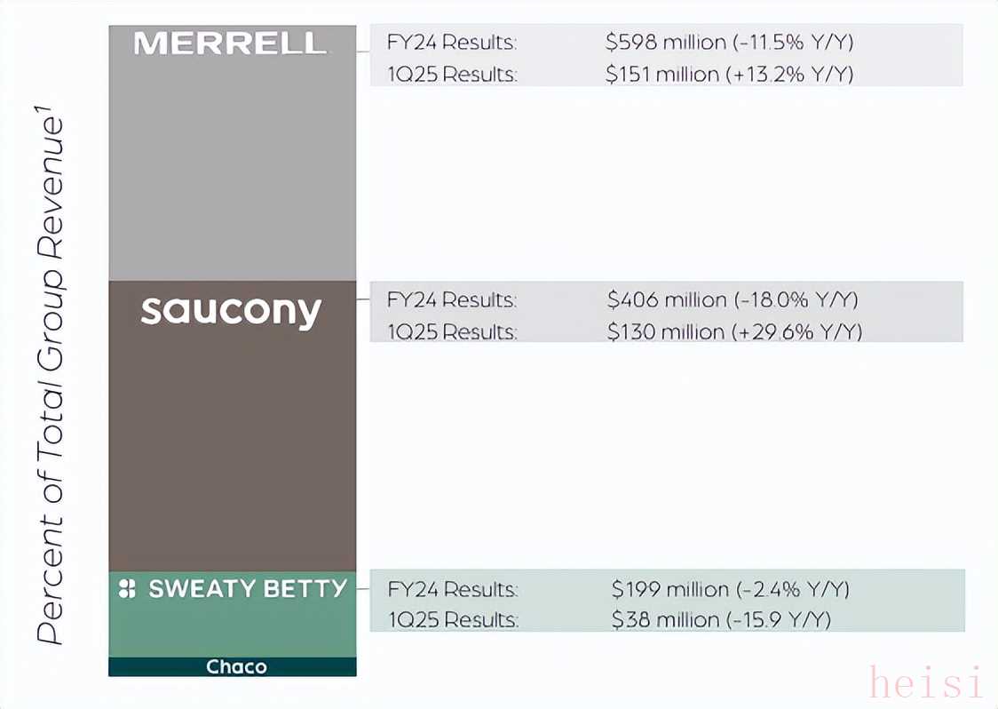 但翻開財(cái)報(bào)可以看到,其旗下Merrell(邁樂)、Saucony(索康尼)收入增速紛紛由負(fù)轉(zhuǎn)正,只剩下Sweaty Betty情況持續(xù)惡化。今年一季度,Sweaty Betty收益僅3800萬美元,降幅同比擴(kuò)大至15.9%。