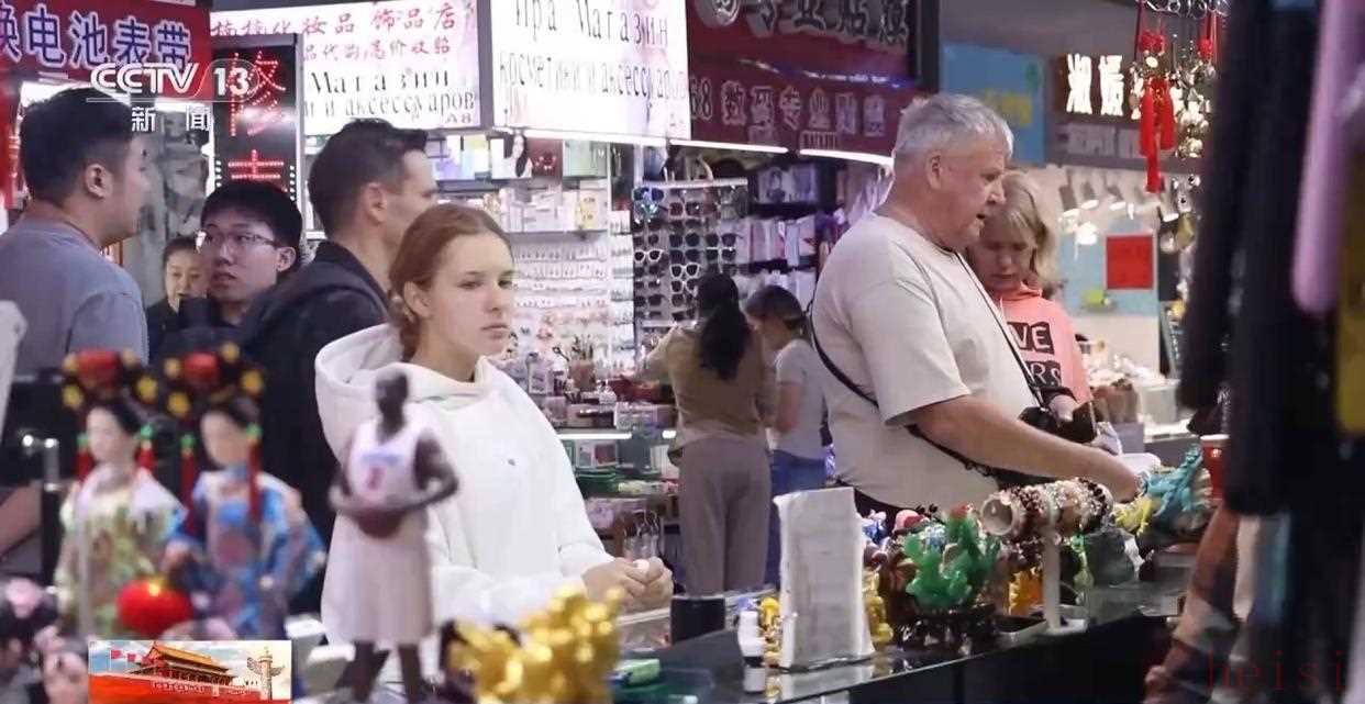 國(guó)慶假期前不久,中國(guó)對(duì)俄羅斯持普通護(hù)照人員試行為期一年的免簽政策,黑河這個(gè)中俄邊境城市因?yàn)檫@項(xiàng)政策利好,迎來(lái)入境消費(fèi)新熱潮。從口岸走進(jìn)城區(qū),早市的煙火氣吸引了大量外國(guó)游客。不到1500米的早市上容納了1600多個(gè)攤位。果蔬攤、小吃鋪攤位前都擠滿(mǎn)了顧客,放眼望去,金發(fā)碧眼的俄羅斯游客隨處可見(jiàn)。