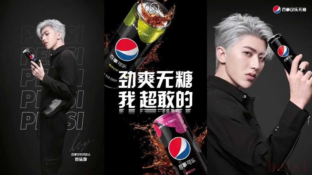 2021年,當(dāng)代先鋒偶像蔡徐坤成為百事可樂代言人?!拔覀冞x擇蔡徐坤是因?yàn)樗敢庠诔擅鬂撔淖鲎约旱囊魳?,自我沉淀。這與我們品牌調(diào)性相符。”穆欣硯解釋。在2018年,百事可樂無糖曾攜手獨(dú)立音樂唱作人竇靖童共同演繹超敢精神。