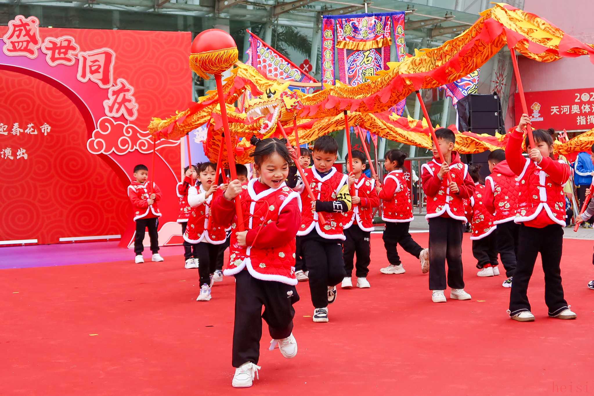 在主舞臺(tái),廣寧小紅星幼兒園的幼童或是高舉獅頭,或是舞動(dòng)金龍,配合著鼓點(diǎn)賣(mài)力演出,“小獅”“小龍”動(dòng)作整齊劃一、朝氣蓬勃、氣勢(shì)昂揚(yáng),贏得現(xiàn)場(chǎng)觀眾陣陣掌聲?!斑@是孩子們第二次到廣州花市演出,今年還新增了舞龍的環(huán)節(jié),每個(gè)孩子都刻苦訓(xùn)練、享受其中?!庇變簣@指導(dǎo)教練歐老師說(shuō)。
