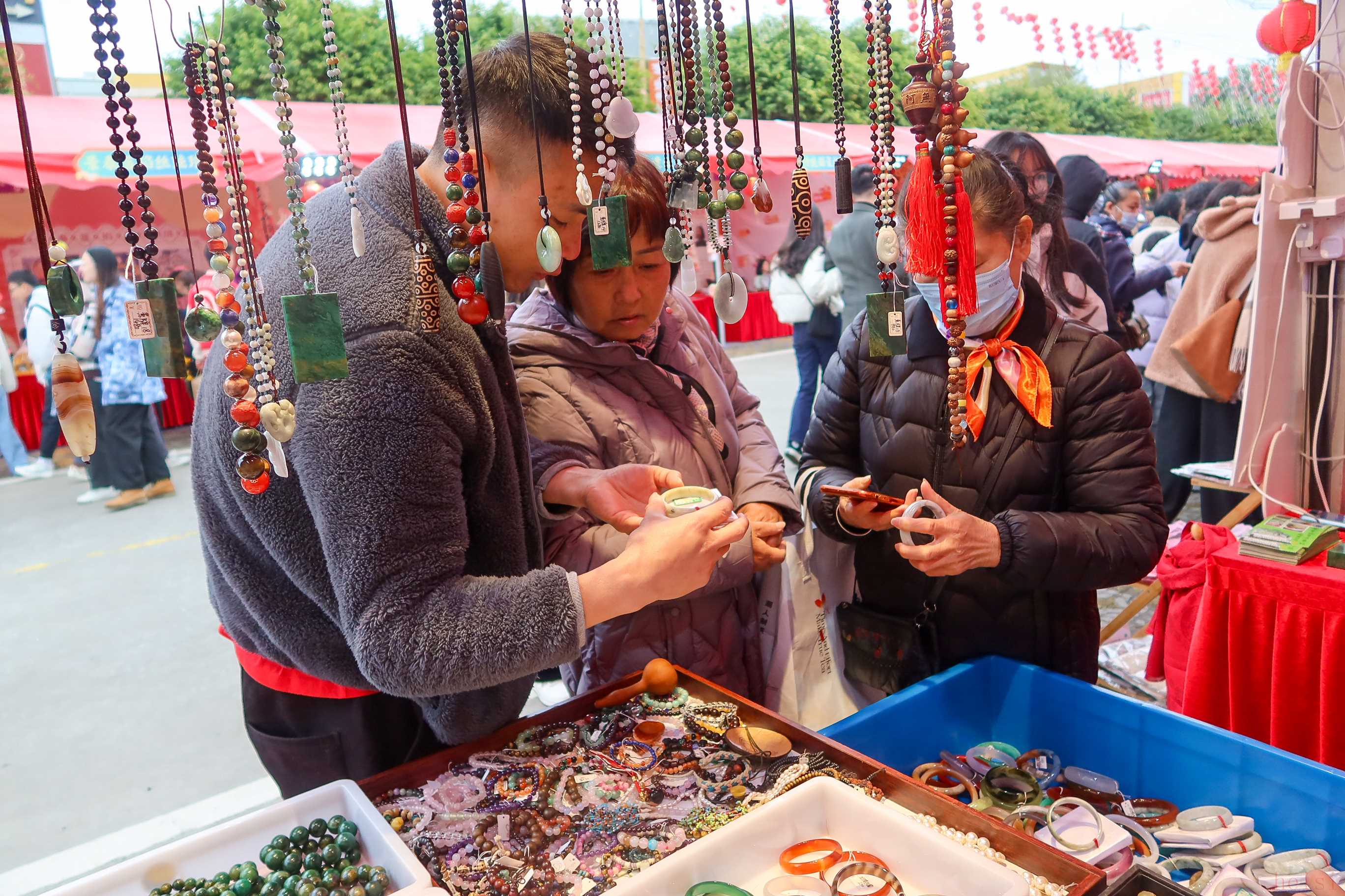 廚師之鄉(xiāng),食在廣寧。天河駐廣寧工作隊(duì)還牽線搭橋,推動(dòng)廣寧特色名優(yōu)農(nóng)產(chǎn)品上架天河迎春花市,香甜軟糯的番薯干、酸甜開(kāi)胃的山楂面、營(yíng)養(yǎng)豐富的腐竹,以及獨(dú)特融合調(diào)配的砂仁同甘茶和竹鄉(xiāng)同甘茶等商品琳瑯滿(mǎn)目。而廣寧作為中國(guó)五大名石之一、國(guó)家地理標(biāo)志產(chǎn)品——廣綠玉礦源唯一產(chǎn)地,廣寧玉雕也在天河區(qū)迎春花市的非遺展上展出。