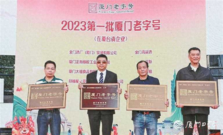 這一消息引燃了在廈臺資企業(yè)的申報熱情。經(jīng)過企業(yè)自主申報、綜合評審、官網(wǎng)公示等環(huán)節(jié),金門酒廠(廈門)貿(mào)易有限公司、廈門正新橡膠工業(yè)有限公司、廈門太祖食品有限公司、鄭福星(廈門)茶業(yè)進(jìn)出口有限公司4家在廈臺資企業(yè)先行通過認(rèn)定,成為2023年第一批廈門老字號,注冊商標(biāo)和品牌字號分別為“金門高粱酒”“正新”“太祖”“鄭福星”。據(jù)介紹,這四家在廈臺企經(jīng)營范圍涉及白酒、車輛輪胎、貢糖糕餅、茶葉等產(chǎn)品及服務(wù)。29日起,它們可以正式掛牌廈門老字號牌匾,并使用證書及標(biāo)識。