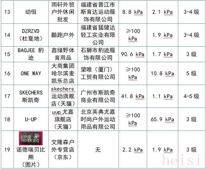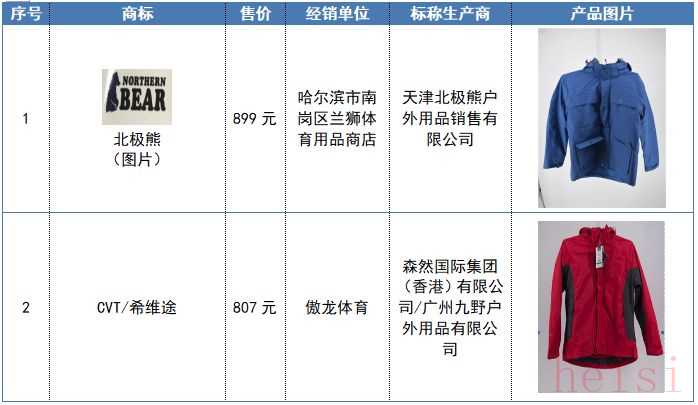 沖鋒衣產(chǎn)品比較試驗結(jié)果