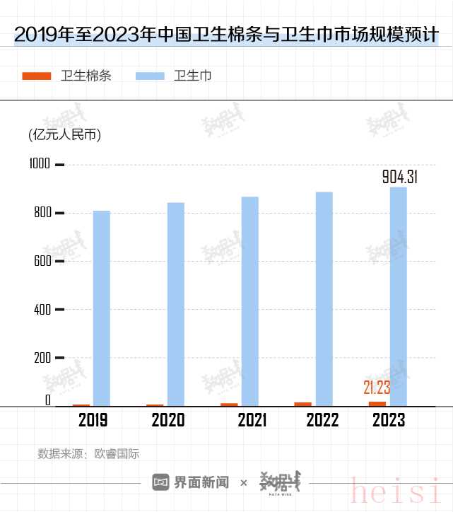 不過只需要對比一下衛(wèi)生巾市場規(guī)模,衛(wèi)生棉條實在是“小巫見大巫”。2018年,衛(wèi)生巾市場規(guī)模達783.2億元,預(yù)計今年將達到811.9億元,到2023年將增長至904.3億元——衛(wèi)生棉條連它的一個零頭都不及。