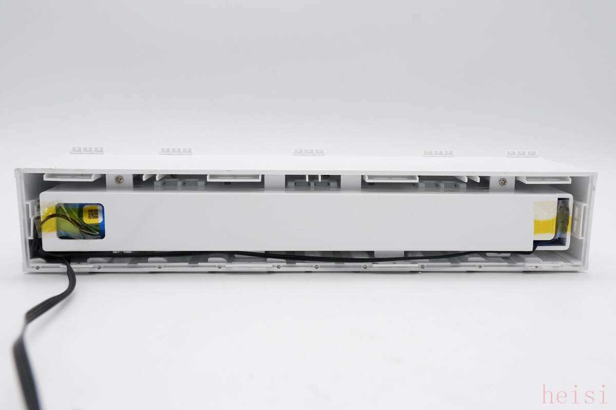 頂部外殼上固定有一塊小板,品牌指示燈以及電源鍵設(shè)在該小板上,連接導(dǎo)線插拔式設(shè)計(jì)。
