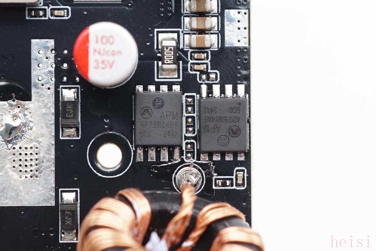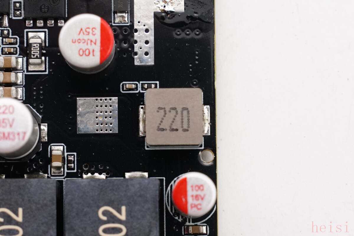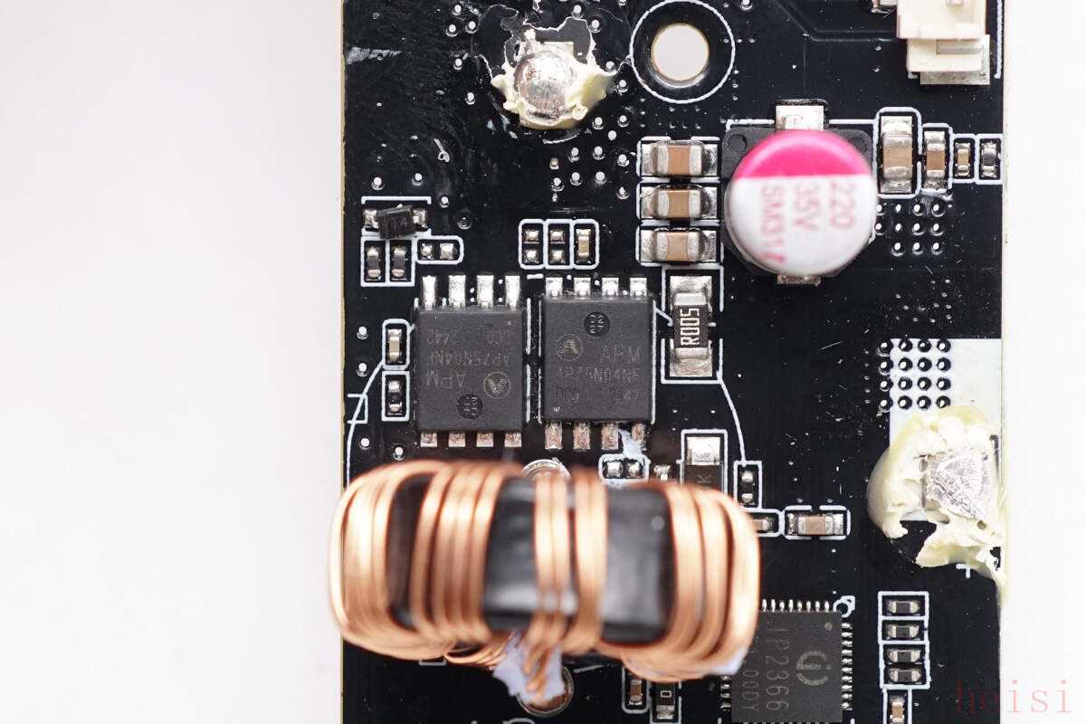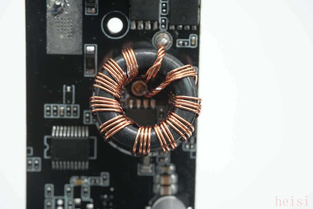 搭配的升降壓電感特寫,兩個(gè)USB-C接口調(diào)壓電路所采用的方案完全一樣。