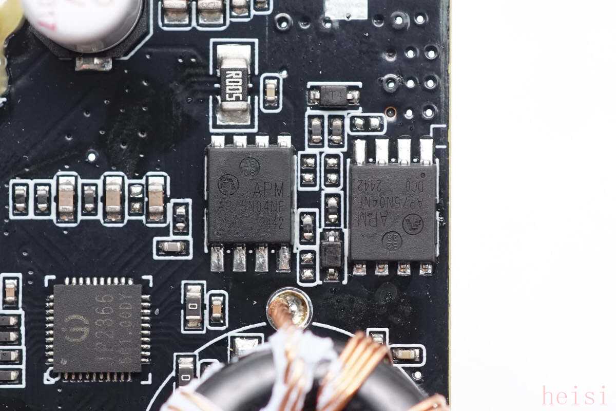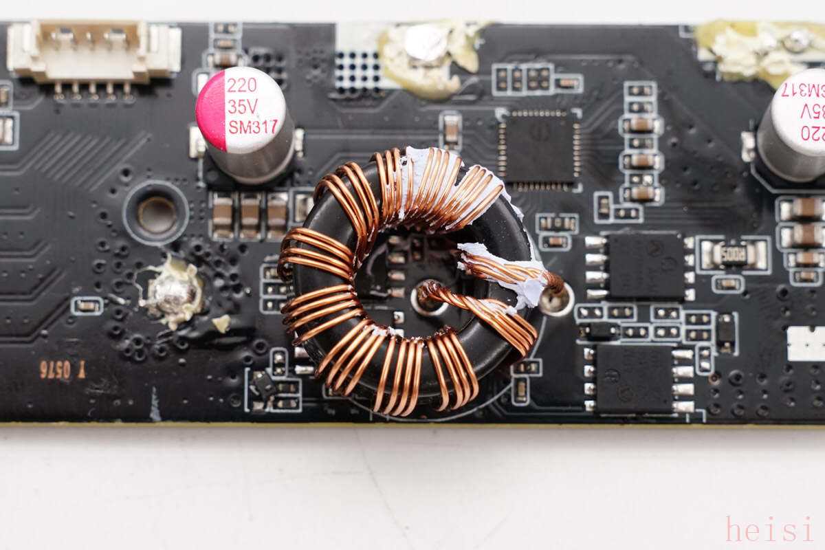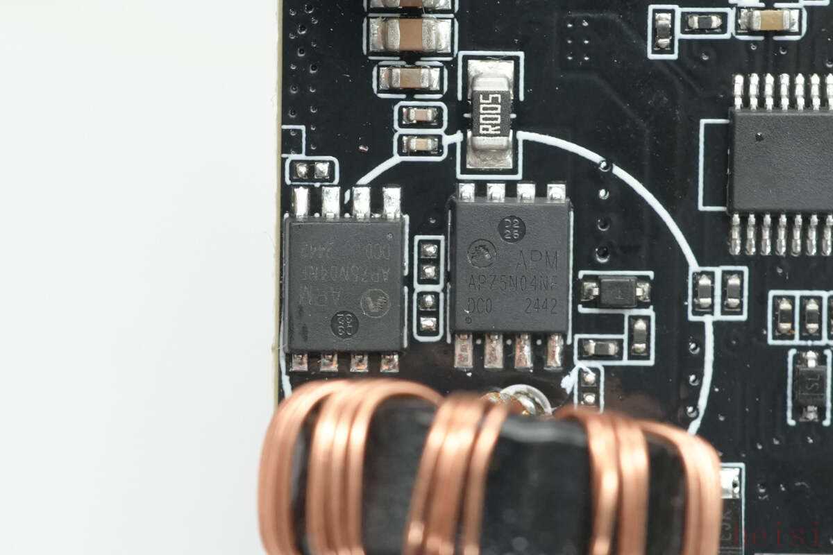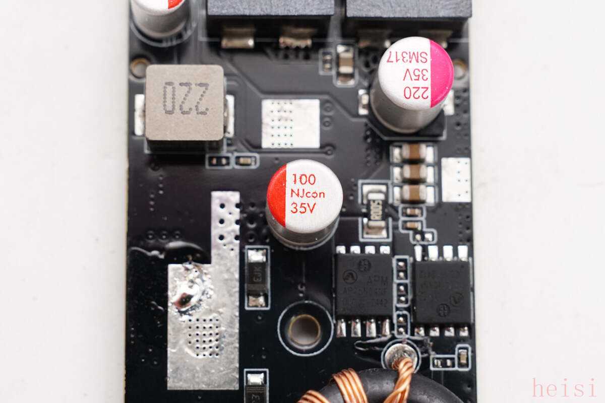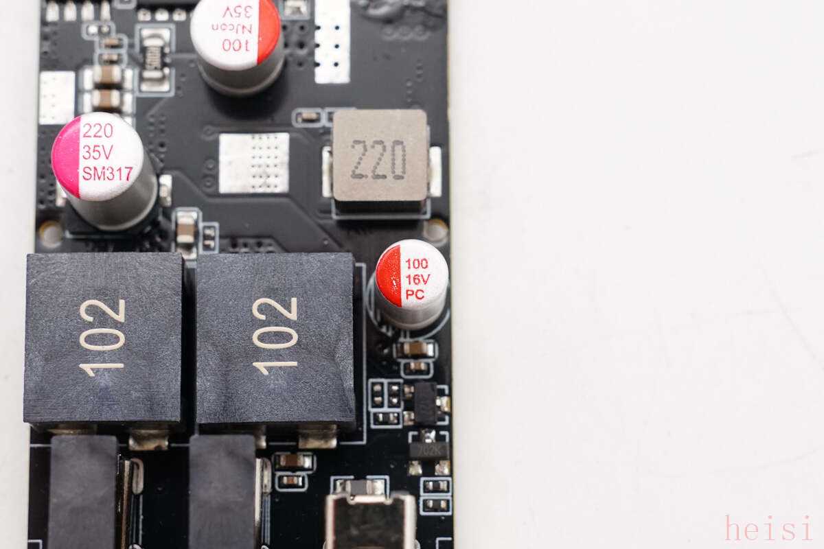 搭配的升降壓電感特寫,兩個(gè)USB-C接口調(diào)壓電路所采用的方案完全一樣。