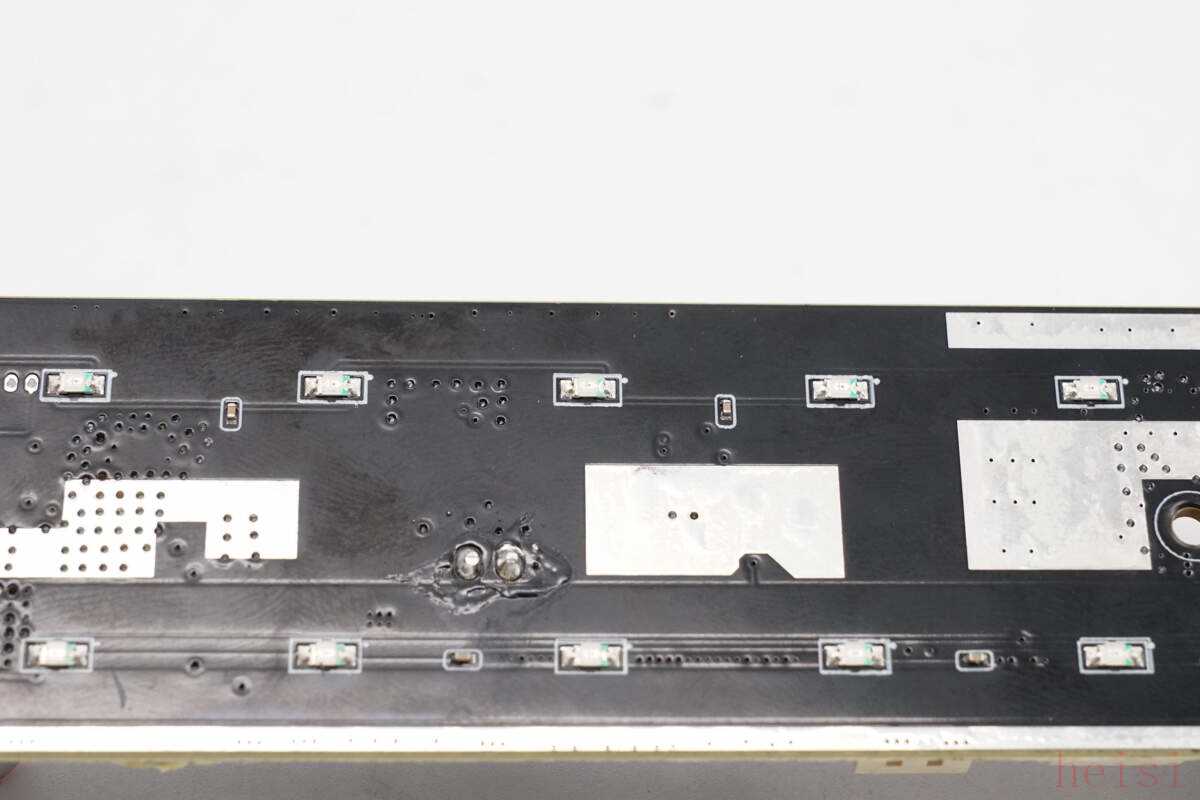 將PCB板拆下,電源鍵貼片焊接,LED指示燈覆蓋泡棉防串光。