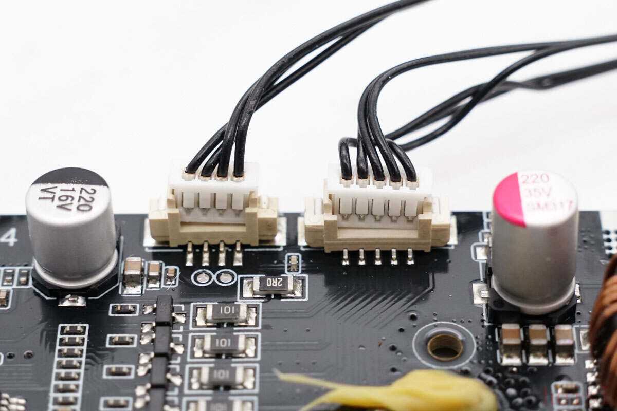 用于連著主板與另外兩塊板子的兩組導(dǎo)線兩端均為插拔式設(shè)計(jì),方便組裝。
