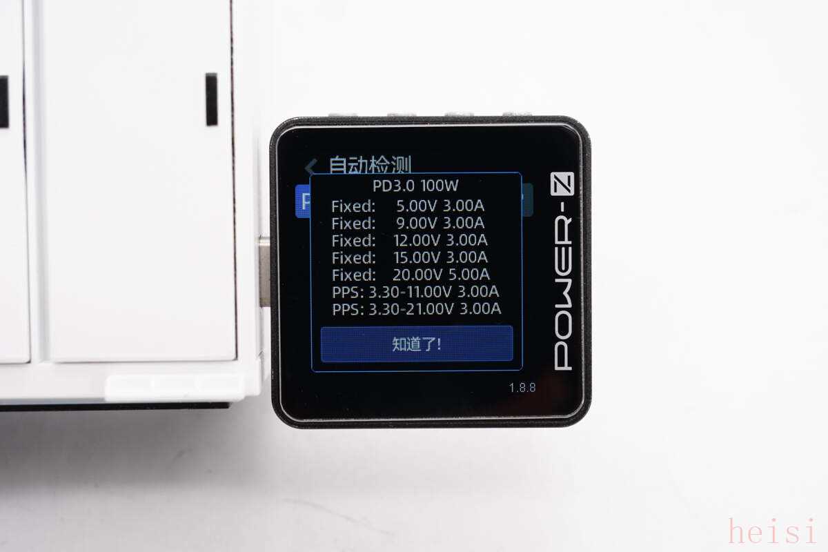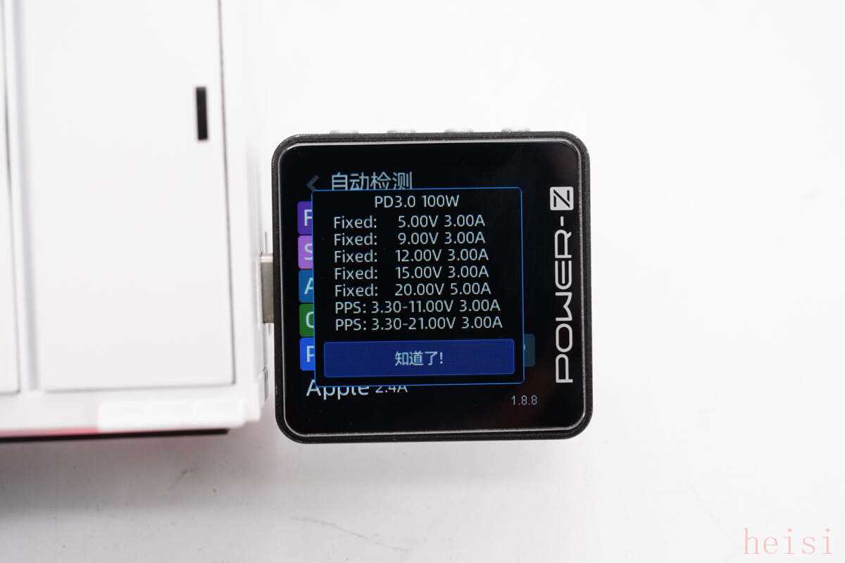 并且同樣具備5V3A、9V3A、12V3A、15V3A、20V5A五組電壓檔位,以及3.3-11V3A、3.3-21V3A兩組PPS電壓檔位。