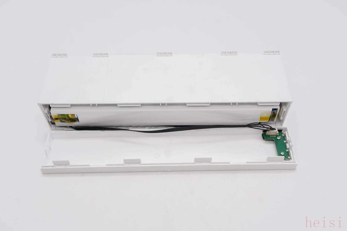 內(nèi)部電池組外套塑料殼固定保護(hù),外殼兩側(cè)采用螺絲進(jìn)行固定。
