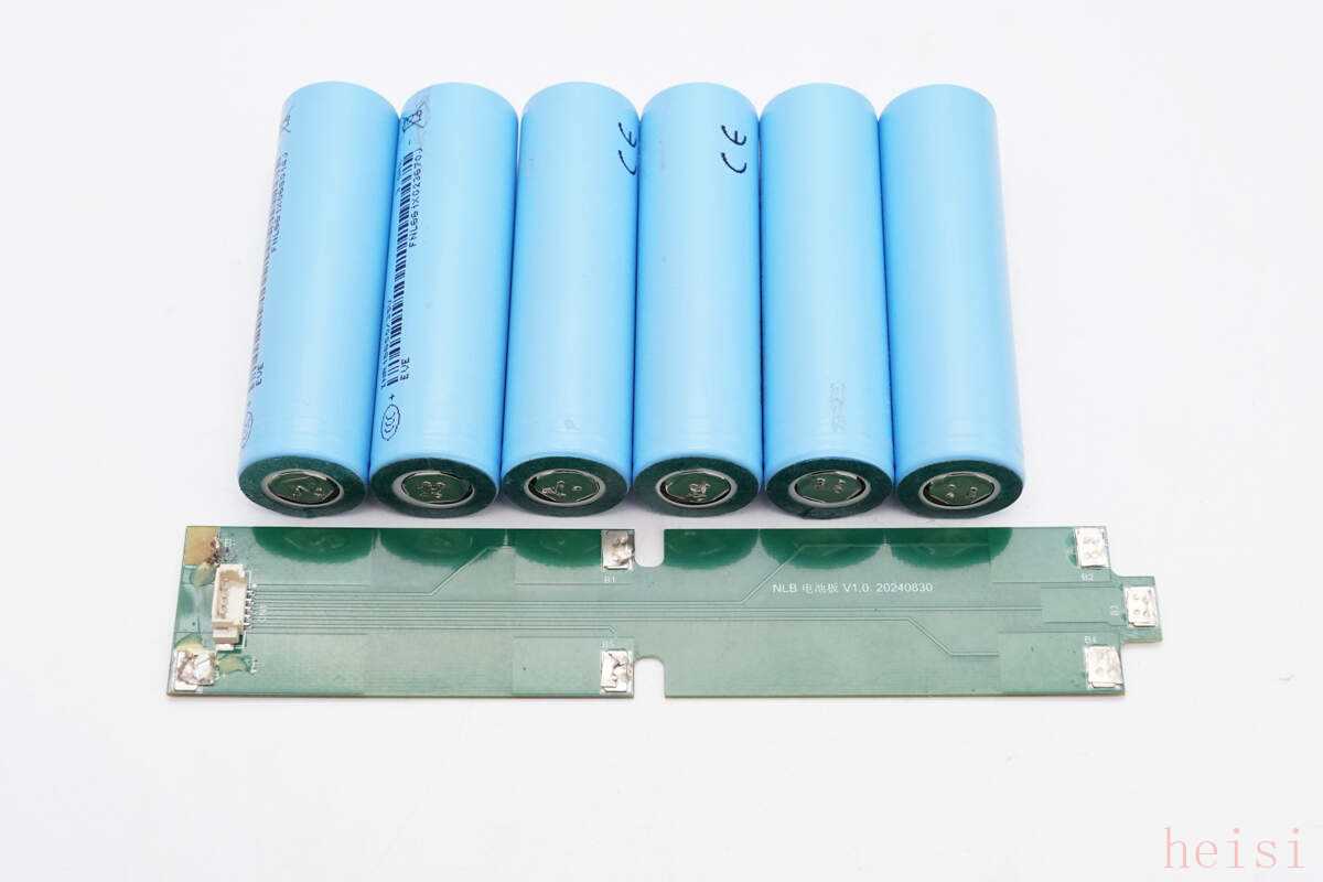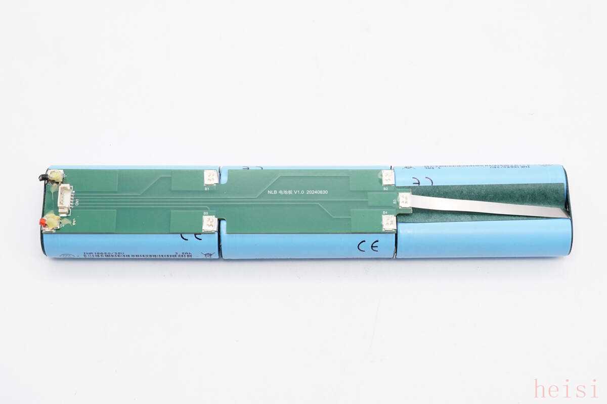 撕掉藍(lán)色封皮,電池組由六顆18650鋰電池組成,并且電池組還通過(guò)鎳片與一塊PCB板點(diǎn)焊連接。