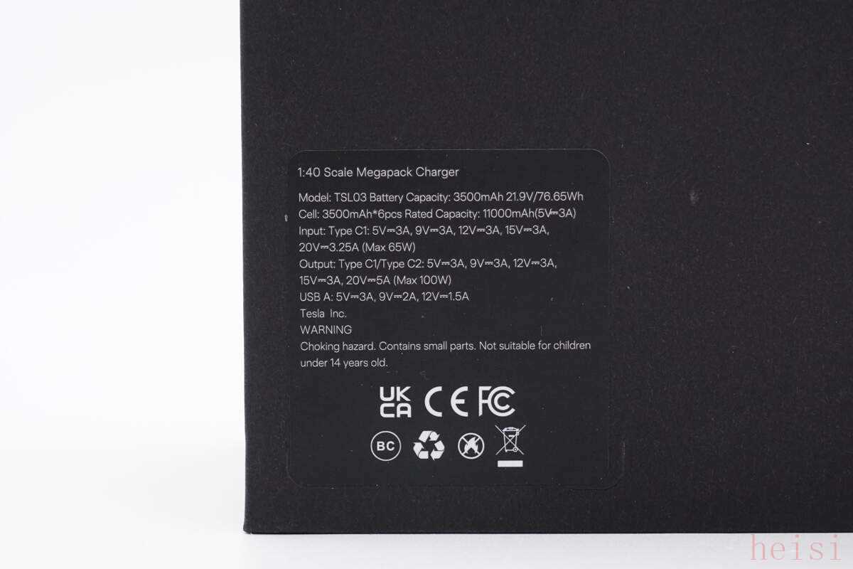 盒子頂面一角設(shè)計(jì)有Tesla品牌和產(chǎn)品英文名稱——1:40 Scale Megapack Charger。
