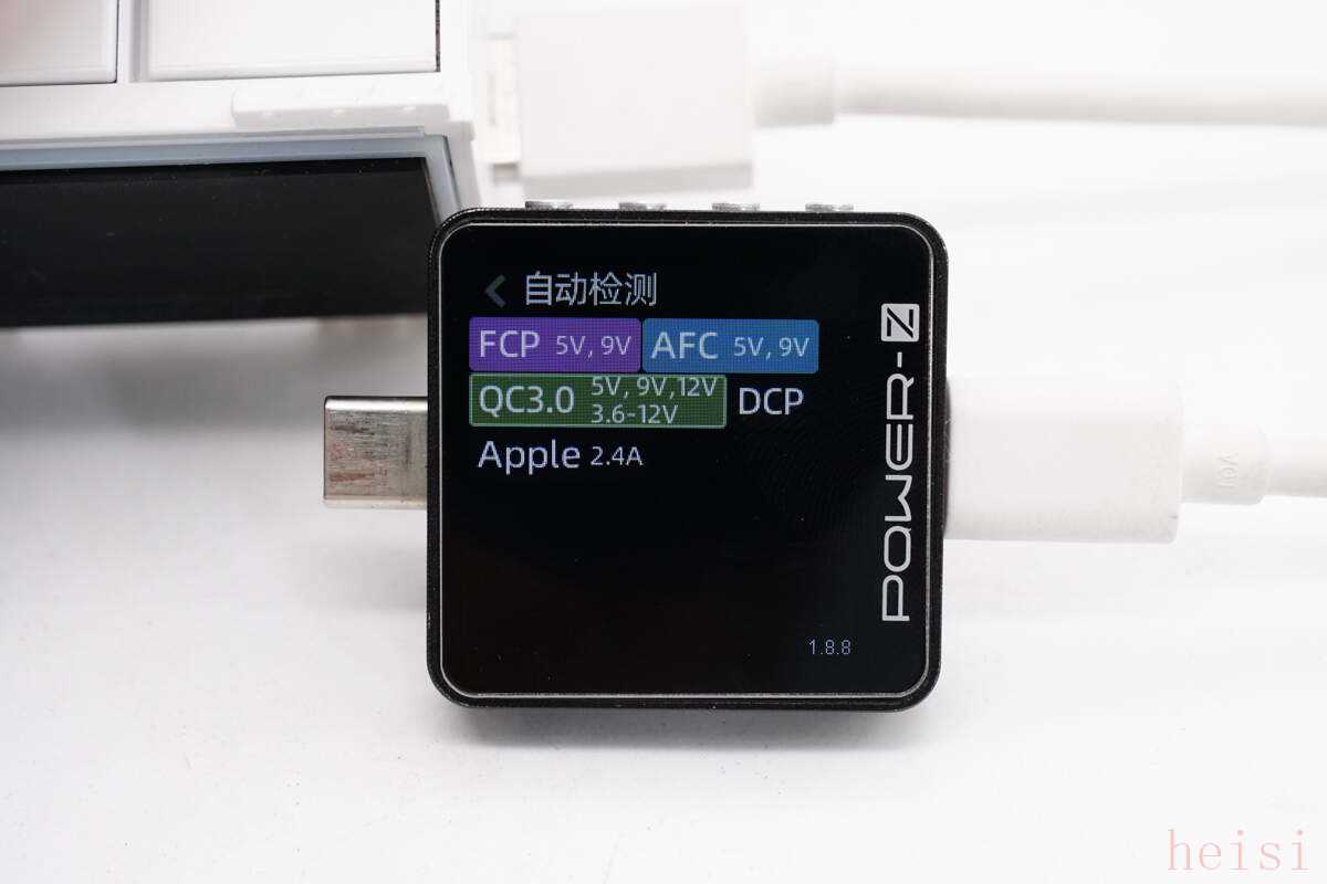 使用ChargerLAB POWER-Z KM003C測(cè)得USB-C1口支持PD3.0、PPS、QC5、DCP充電協(xié)議。