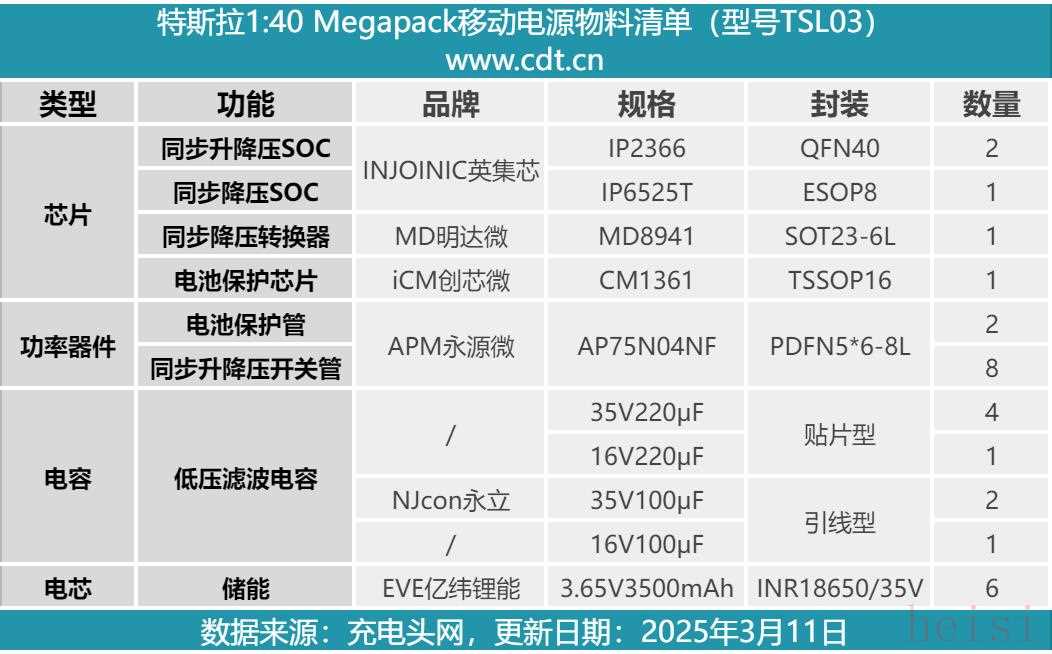 最后附上特斯拉1:40 Megapack移動(dòng)電源的核心器件清單,方便大家查閱。