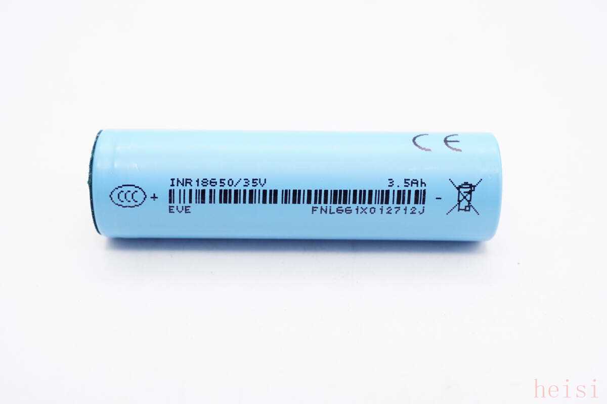 電池組六顆電芯均為EVE億緯鋰能INR18650/35V鋰離子電池,電池容量為3500mAh,標(biāo)稱電壓3.65V,標(biāo)稱能量12.78Wh,通過(guò)了CE、CCC認(rèn)證。