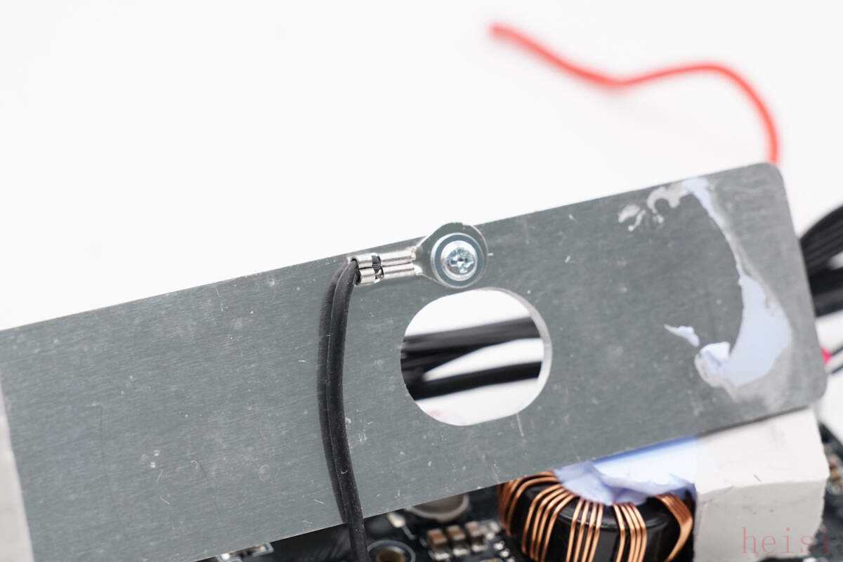 此外散熱板上還通過(guò)螺絲連接有兩根黑色導(dǎo)線。