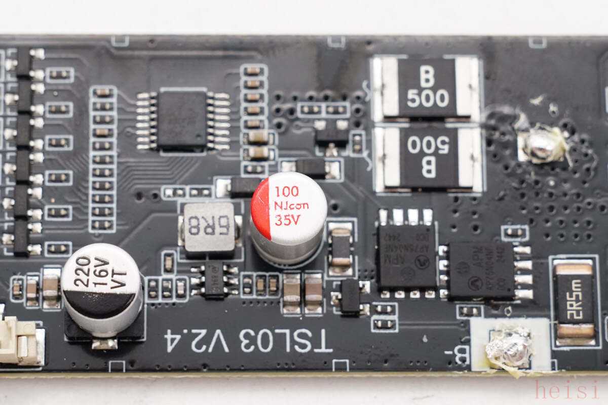 輸入濾波固態(tài)電容為NJcon永立品牌,規(guī)格為35V100μF。