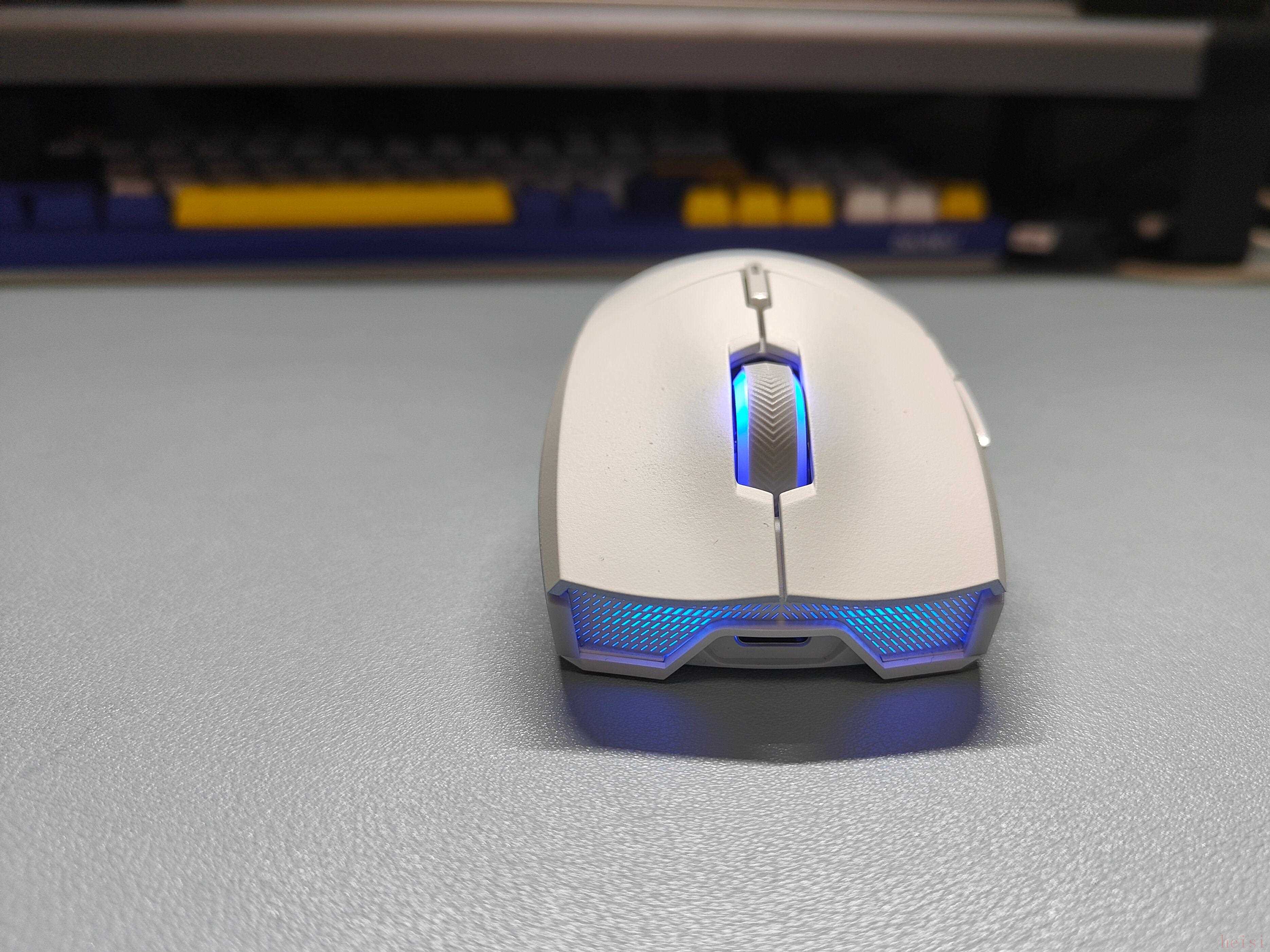 這款鼠標(biāo)使用的是原相PMW3325DB傳感器,在手掌、滾輪和前部都有燈光,可以設(shè)置成不同的顏色,尤其是從正面看,有點像跑車進氣口的設(shè)計,還是非常帥氣的。手握感受它的形狀和我的羅技G102/G 304這種倒梯形相反,拯救者M500切面是正梯形的,所以剛上手的時候有一種抓不住的感覺,但是使用了一段之后很快也就適應(yīng)了,加上側(cè)面手指接觸部分都是軟性材料,作為一款偏小的鼠標(biāo),對手心的填充倒是比較充盈。滾輪的阻尼感不強,但是很輕柔用起來還挺舒服的,按鍵微動的反饋也不錯。