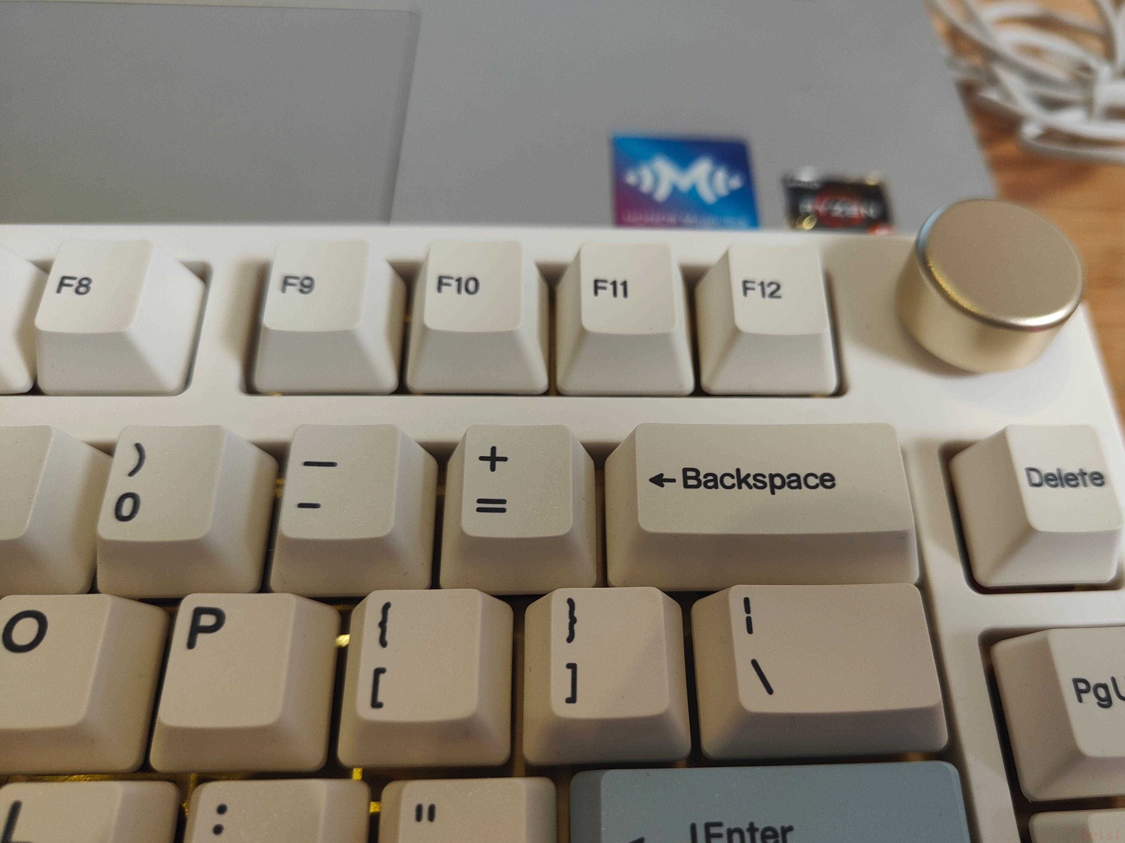 如果單從外觀來說這款NJ80略有平淡,但是很耐看,右上角配備了一顆暗金色的金屬旋鈕,默認(rèn)情況下旋動旋鈕可以調(diào)節(jié)音量,按下則是直接靜音。旋鈕手感不錯,齒輪的阻尼感比較舒服。配備了一套PBT鍵帽,表面的磨砂紋路摸起來很舒服。