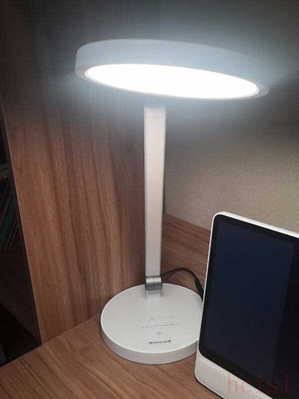 兒童護(hù)眼燈推薦平價(jià)品牌之霍尼韋爾HWT-02B臺(tái)燈:整體造型簡約,上下雙圓形造型穩(wěn)固可靠,搭配兩個(gè)可旋轉(zhuǎn)轉(zhuǎn)軸,可以輕松實(shí)現(xiàn)多角度照明調(diào)節(jié)。其17厘米直徑燈面結(jié)合雙側(cè)發(fā)光技術(shù),即便在同類產(chǎn)品中尺寸不算突出,也能為120厘米桌面提供均勻柔和的光線。