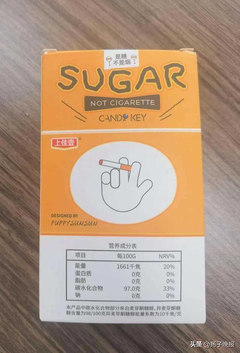 這款糖果的包裝盒也類似煙盒,盒面上印有一只手夾著香煙的圖案,圖片上方寫著“是糖不是煙”的字樣。它一盒兩根,售價一元一盒,對孩子的購買力而言算是平價的零食。對此,不少家長反映:“即便知道只是塊糖,也會擔心它誘導孩子吸煙。”