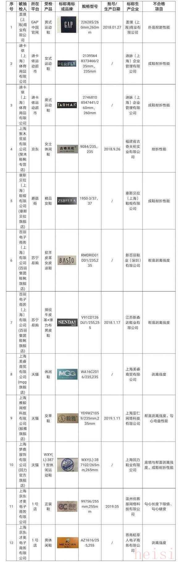 近日,上海市市場監(jiān)督管理局對網(wǎng)絡(luò)平臺銷售的鞋類產(chǎn)品質(zhì)量進行了監(jiān)督抽查。抽查了60批次的產(chǎn)品,經(jīng)檢測,有12批次不合格(其中,平臺自營5批次,第三方7批次)。
