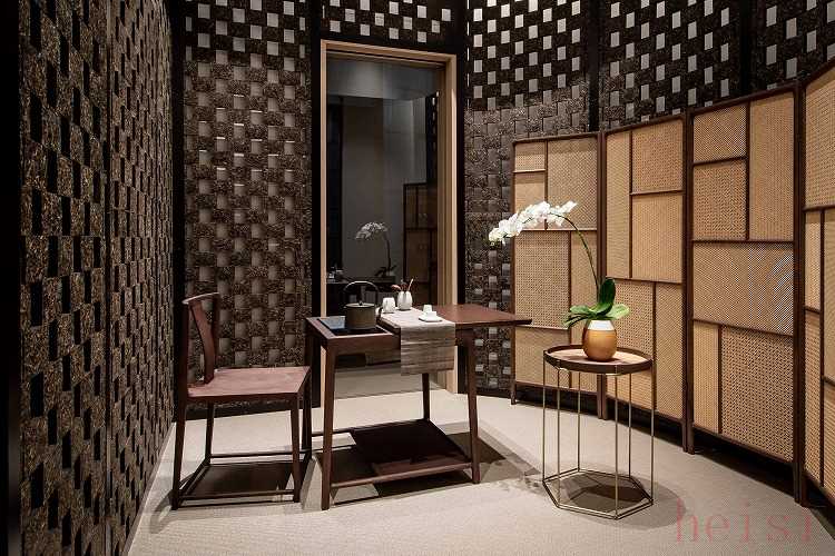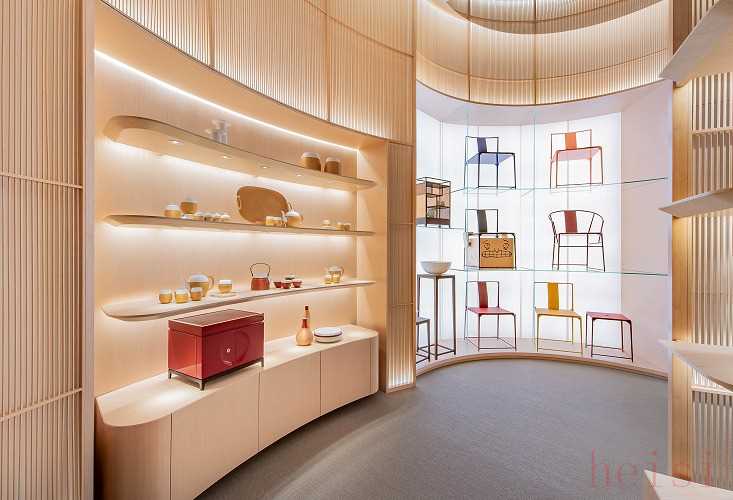 店內(nèi)裝潢采用淺色調(diào),白橡木、玻璃等材質(zhì)烘托整體店鋪的通透感,前沿創(chuàng)想與開闊明快的氛圍融匯交織,呈現(xiàn)別具一格的視覺體驗。優(yōu)雅竹屏將店內(nèi)空間分隔為多個專屬區(qū)域,開放式的流暢布局分別陳列SHANG XIA上下成衣、配飾、珠寶、家居和家具等系列作品。店鋪內(nèi)設(shè)有專屬VIP茶室,由SHANG XIA上下經(jīng)典普洱茶磚墻打造,別致設(shè)計結(jié)合四溢茶香,聯(lián)結(jié)多重感官,營造出沉浸式購物體驗。