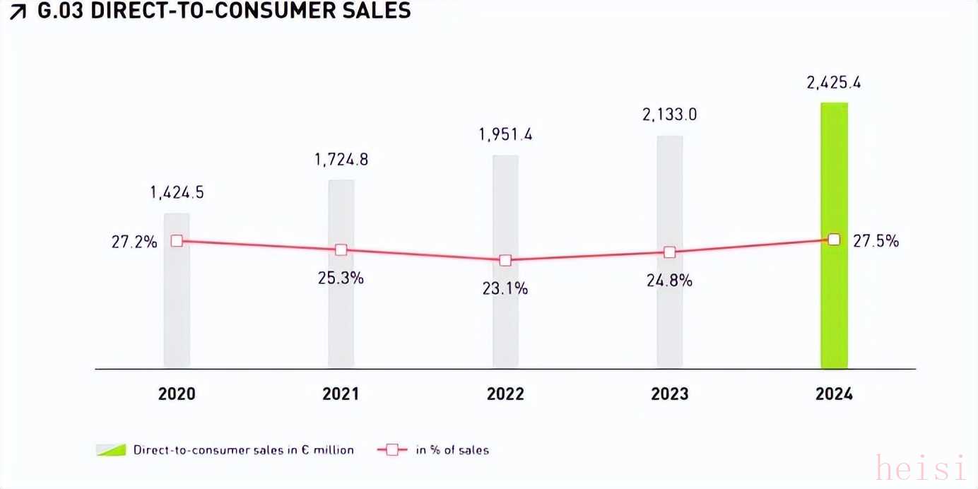 值得注意的是,DTC業(yè)務(wù)中,PUMA 自營(yíng)門店和工廠奧特萊斯的銷售額在 2024 年增長(zhǎng)了 14.2%,電商業(yè)務(wù),按匯率調(diào)整后的銷售額在 2024 年增長(zhǎng)了 21.1%。彪馬方面認(rèn)為,更堅(jiān)固的價(jià)格體系、自有零售商店的開設(shè)帶動(dòng)了銷售數(shù)量的增加。