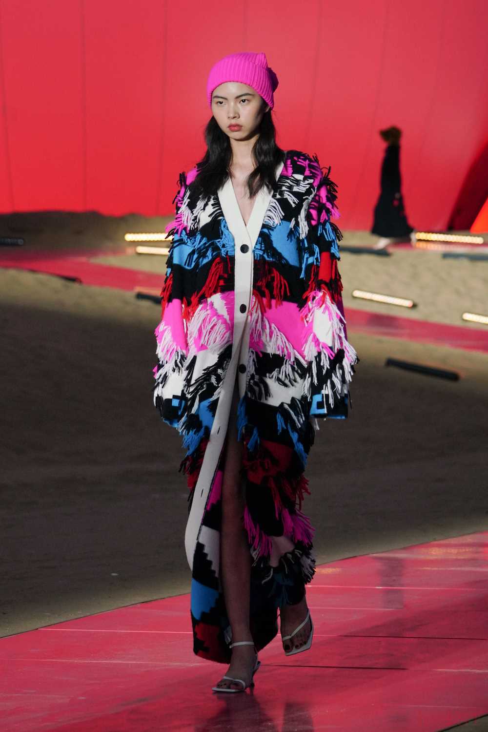 回到品牌發(fā)源地鄂爾多斯市,這場大秀被ERDOS取名為“熾愛當(dāng)歌”,以慶祝鄂爾多斯羊絨服飾集團(以下簡稱“鄂爾多斯”)成立四十周年。在30分鐘時間里,ERDOS把整場大秀分成“致敬”、“此刻”和“未來”三個時間篇章,展示了上百套不同風(fēng)格的秋冬羊絨服飾,企圖在時裝設(shè)計、風(fēng)土自然和宏大敘事之間尋到平衡點。