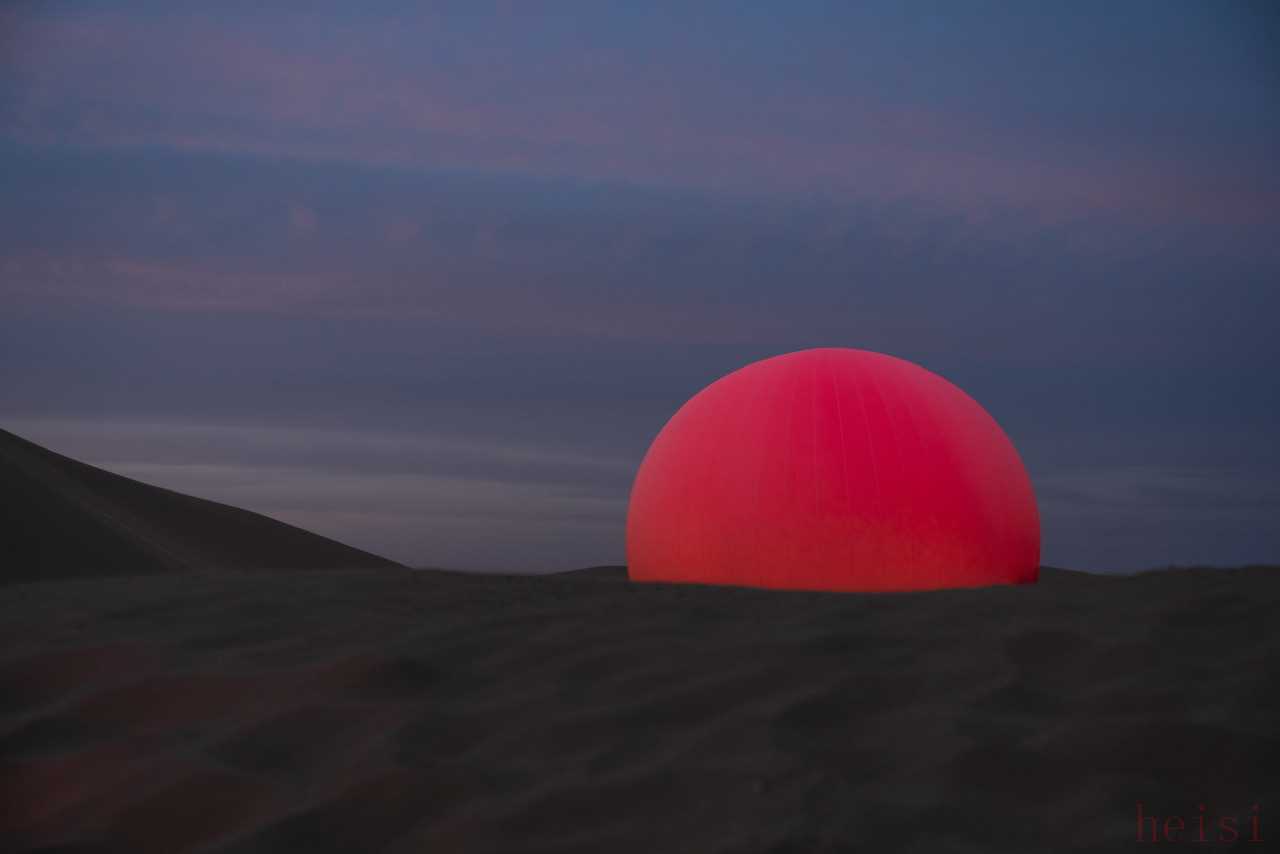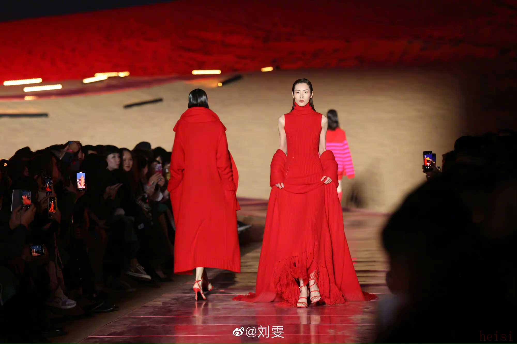 日落時分,這場羊絨時裝大秀準(zhǔn)時開啟。模特們從一座巨大的紅色球體裝置中魚貫而出,沿著一條蜿蜒回轉(zhuǎn)的沙漠走廊,踩著力量感十足的電子音樂節(jié)拍向上百名觀眾走來。而幾臺無人機在大漠星空中盤旋,配合提前架好的攝像機,為守候在直播間的觀眾送去實時的現(xiàn)場直播。