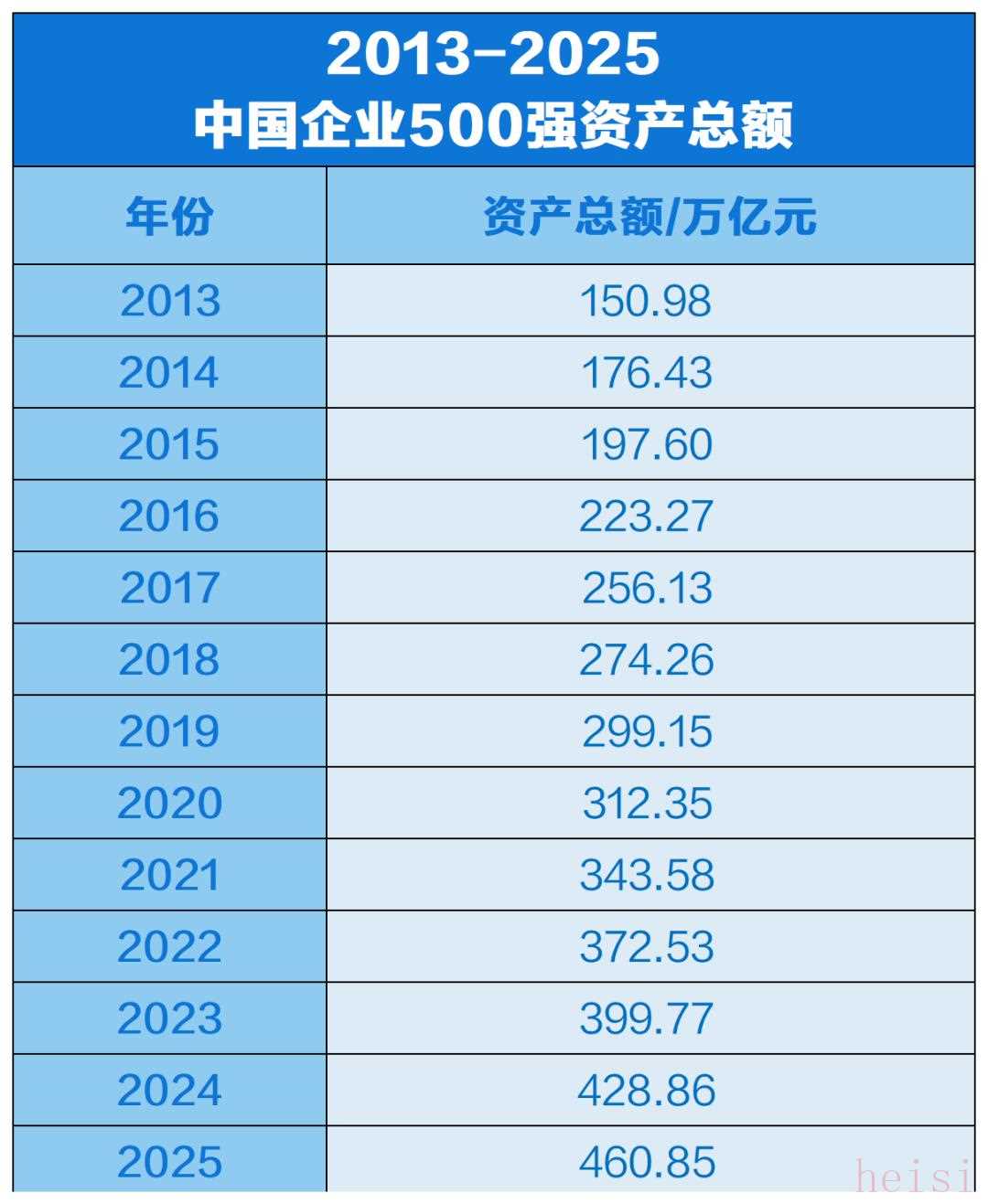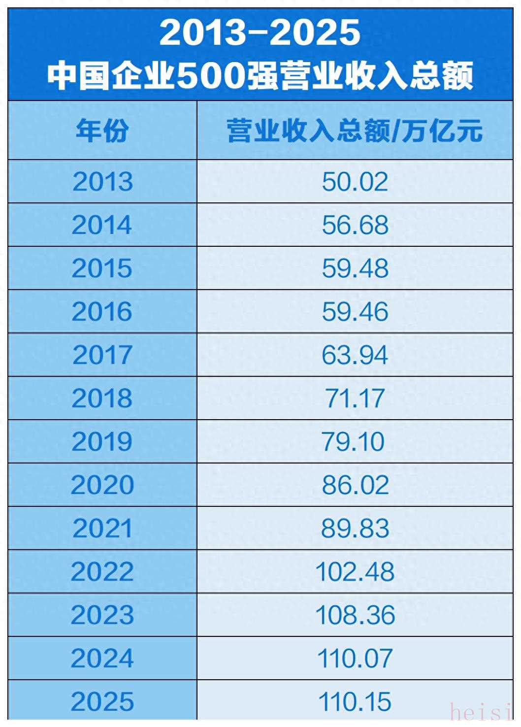 2025中國企業(yè)500強營業(yè)收入達110.15萬億元,較上年500強有所增加。資產(chǎn)總額為460.85萬億元,增長7.46%。
